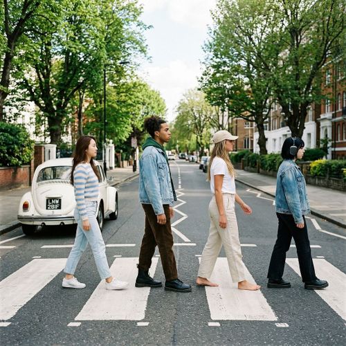 Walk the iconic zebra crossing with your own legendary lineup! This filter meticulously recreates the famous Abbey Road album cover, casting your chosen four into the spotlight. Get that authentic 1960s 35mm film aesthetic, complete with reich colors and vintage grain.